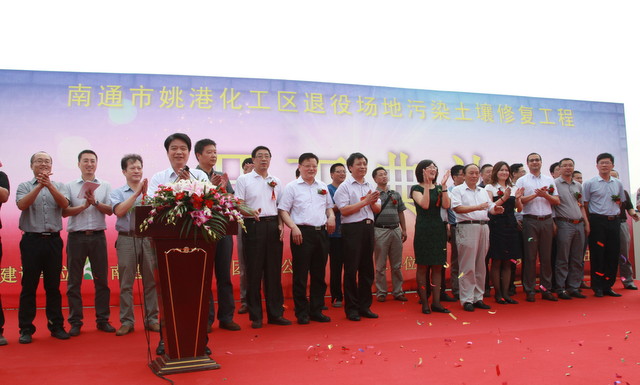 2013年8月30日上午9點(diǎn)18分,政府重視、民眾關(guān)心的南通市姚港化工區(qū)退役場(chǎng)地污染土壤修復(fù)工程開工儀式在姚港路35號(hào)舉行。本次工程修復(fù)范圍包括原南通農(nóng)藥廠、樹脂廠、染化廠生產(chǎn)廠區(qū)及姚港河部分河段,修復(fù)土地面積約550畝,修復(fù)土方量28萬立方米。根據(jù)前期修復(fù)調(diào)查評(píng)估,修復(fù)地塊的污染物主要以揮發(fā)、半揮發(fā)農(nóng)藥、有機(jī)污染物為主,修復(fù)工作將使用熱解析、化學(xué)氧化等多種成熟技術(shù)。修復(fù)工期一年半,修復(fù)達(dá)標(biāo)后再進(jìn)行二次開發(fā)。